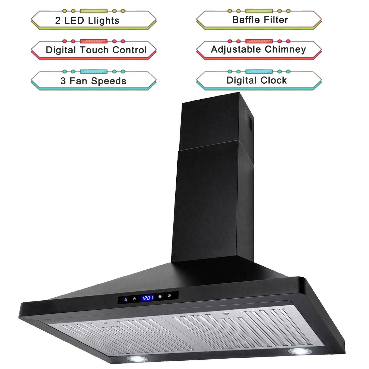 30 Inch Wall Mount Kitchen Hood 350 CFM Range Hood Stove Vented Hood Exhaust Fan