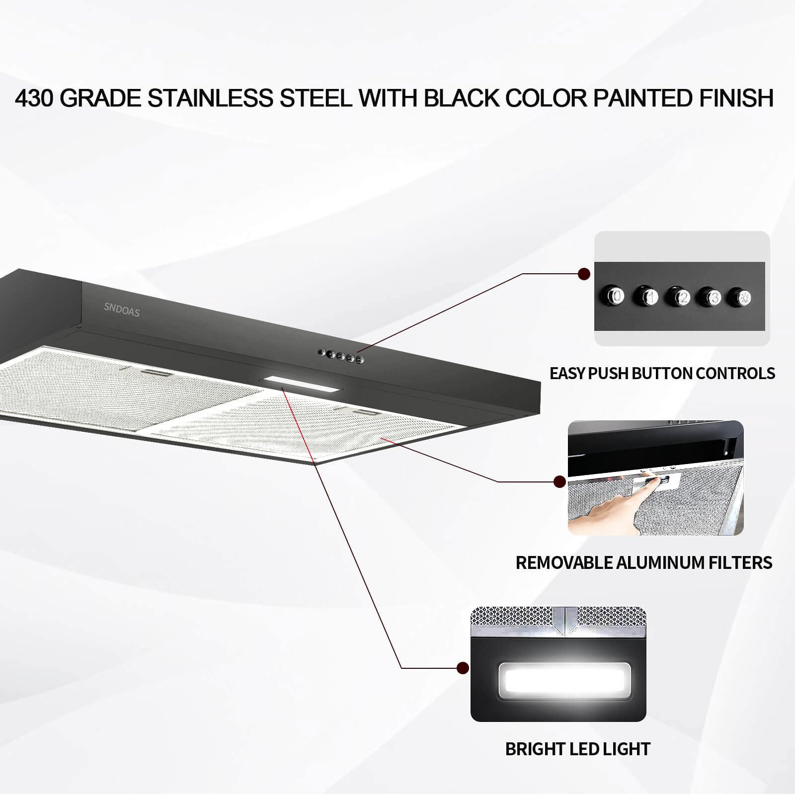 This is a professional Under Cabinet stainless steel range hood. This hood is designed to be both elegant and powerful. This hood is made from 430 grade stainless steel and is a classic. Its durable construction; modern design - a exclusive - guarantee a range hood with a timeless design.