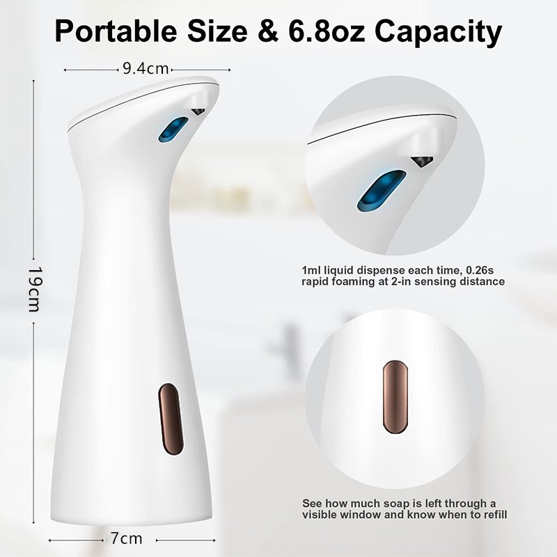 1.[HIGH VOLUME BODY]Our smart soap dispenser is made of high-strength ABS material and has a waterproof silicone base; a near-perfect streamlined body and luxurious design for you to enjoy a healthy life; very stain-resistant and easy to wipe stain remover