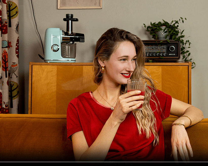 [Easy to clean, no filter] -farewell to the trouble of complex filters!Hazel Quinn The retro cold press juicer has introduced a revolutionary filter-free technological innovation. Cleaning is easy-Save you time and effort by simply flushing the parts. effortlessly intoxicated in the spotless machine.